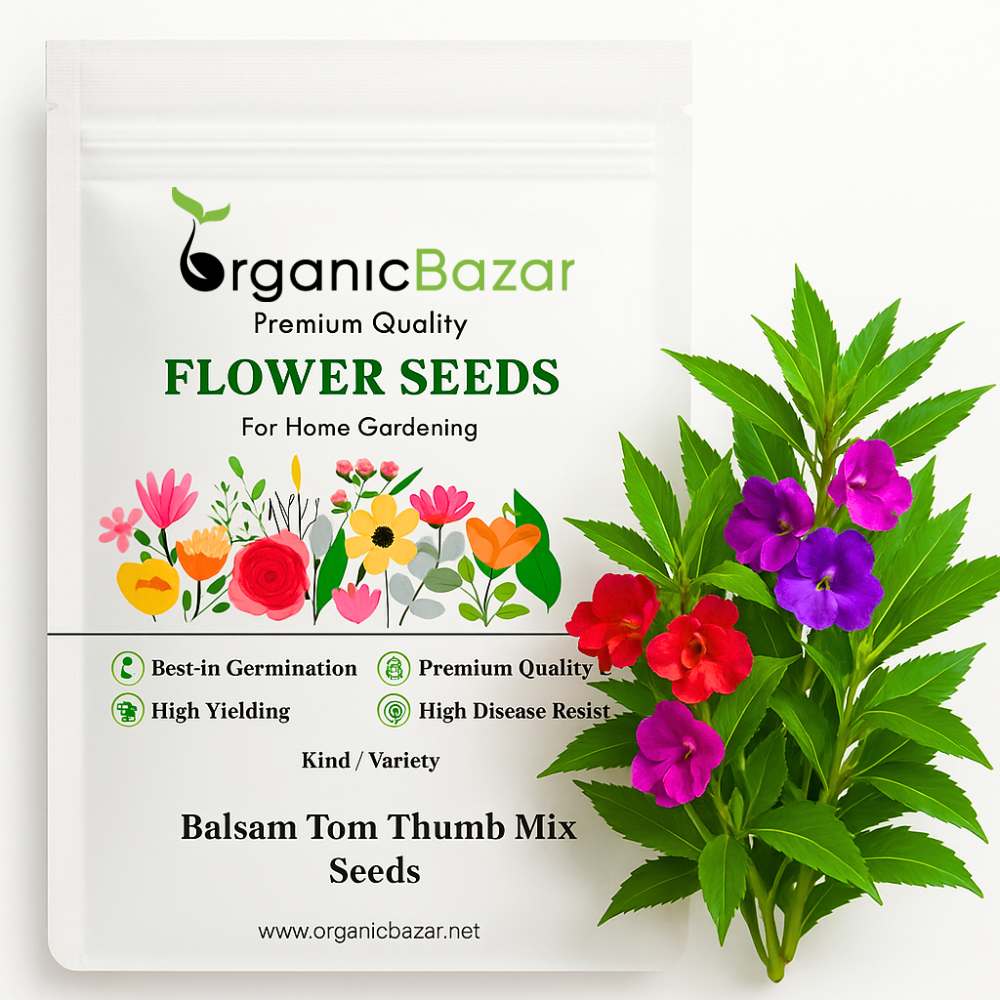 👉 Buy Balsam Tom Thumb Mix Flower Seeds Online at the best price from www.organicbazar.net. Get high germination rates, fast-growing performance, and add a splash of color to your terrace or balcony garden today!