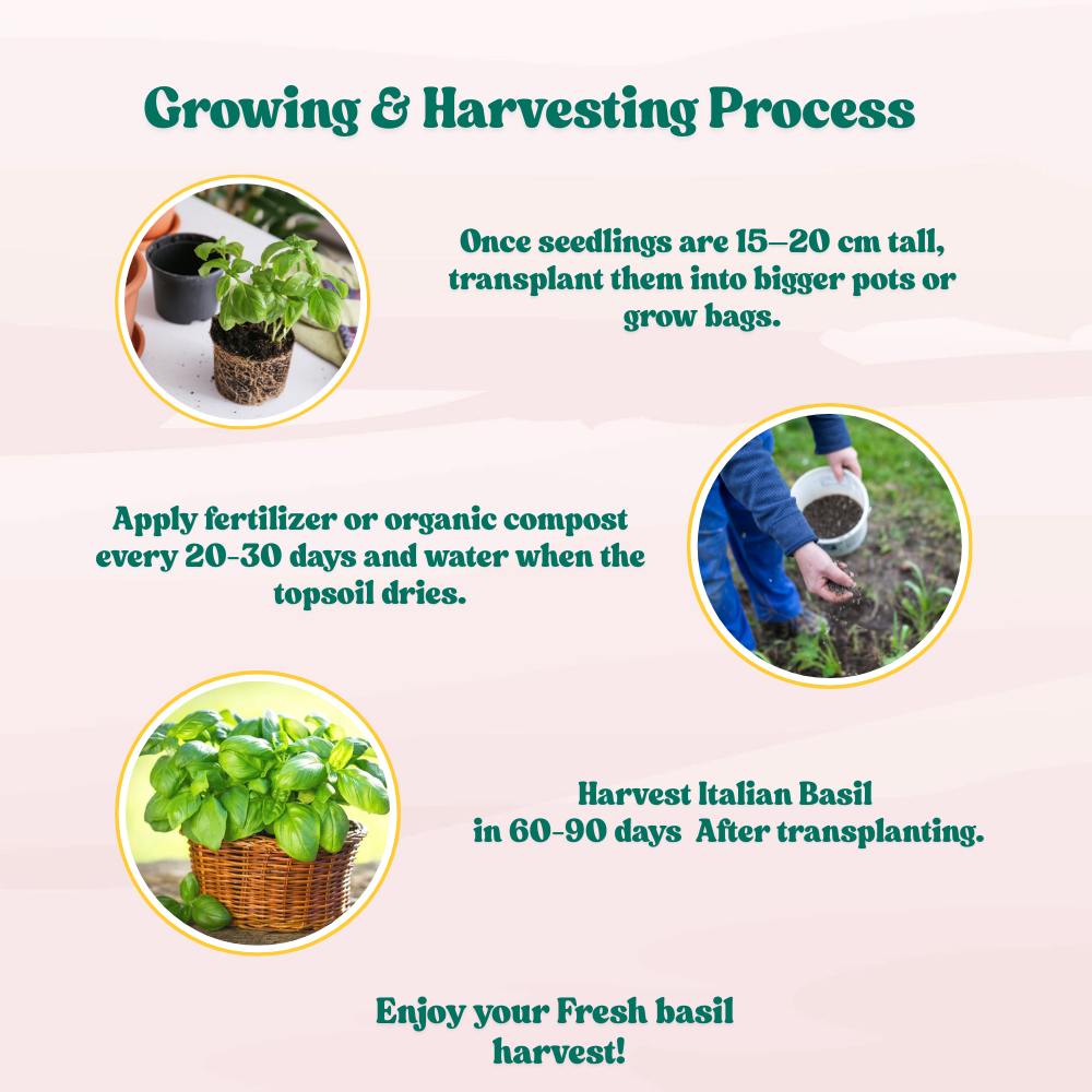 You can grow Italian Basil (Large Leaf) plants throughout the year, but the ideal sowing seasons are spring and summer, when the soil is warm and supports faster germination.