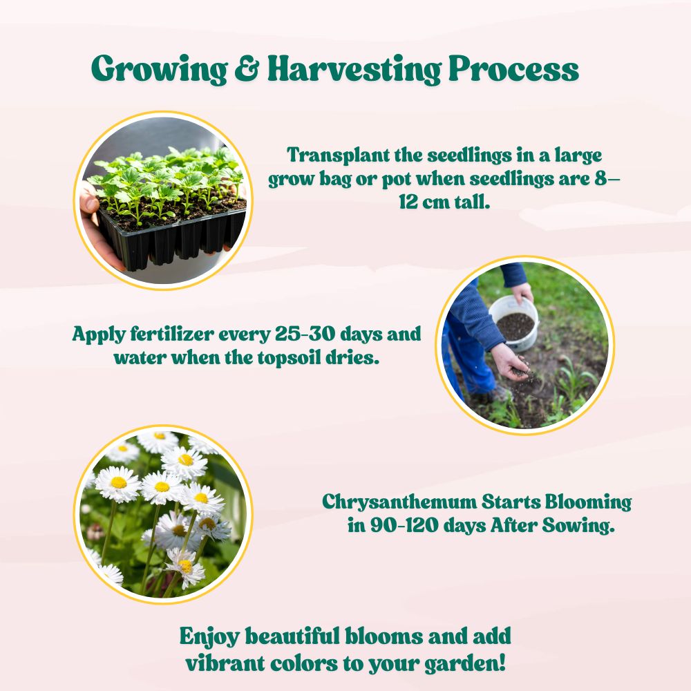 Chrysanthemum Paludosam White Seeds - 300 Seeds (Guldaudi/Chandra Mallika/गुलदाउदी के बीज) High Germination/ Easy To grow/ Perfect for pots, balconies, or Terrace gardens