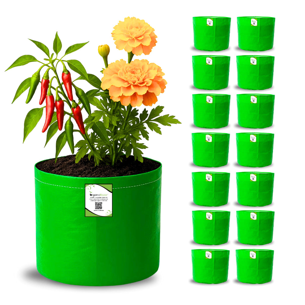 OrganicBazar 9x9 Small Grow Bag for Terrace Garden, Premium HDPE 260 GSM, Green Plant Bags