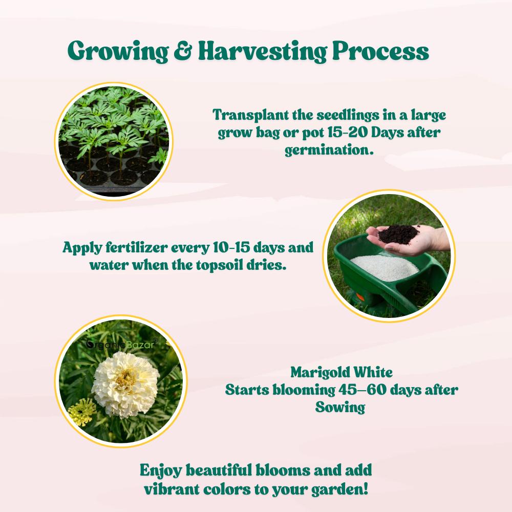 Marigold White Flower Seeds - 50 Seeds (Genda/ सफ़ेद गेंदा के बीज) High Germination/ Easy To grow/ Perfect for pots, balconies, or Terrace gardens