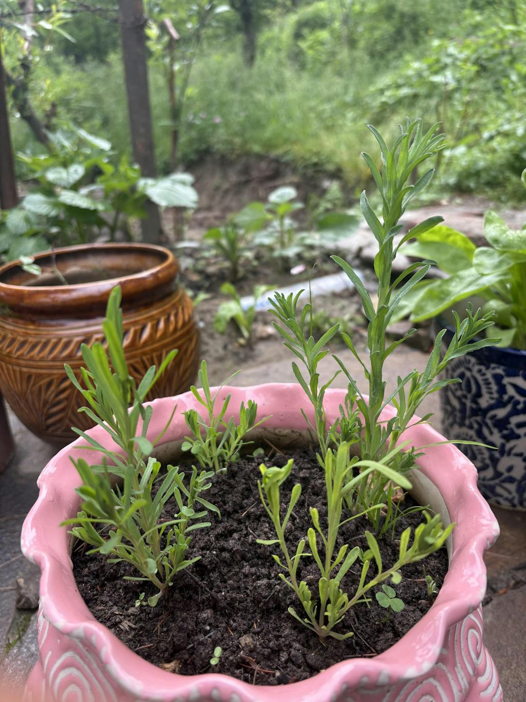 • Plant 2–3 seedlings per pot.