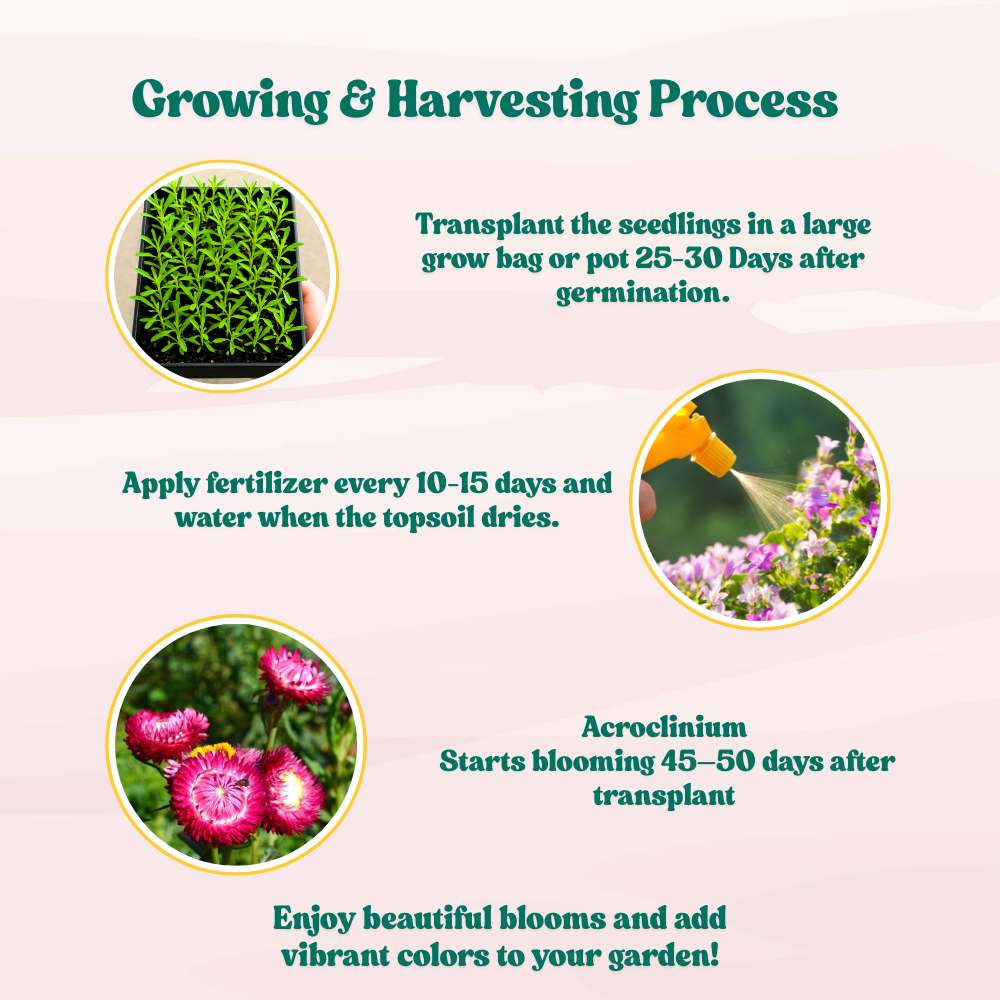 💐 Popular as a cut flower for decoration, Acroclinium can also be dried and preserved. It’s a low-maintenance plant that's perfect for home gardeners, balconies, or flower beds.