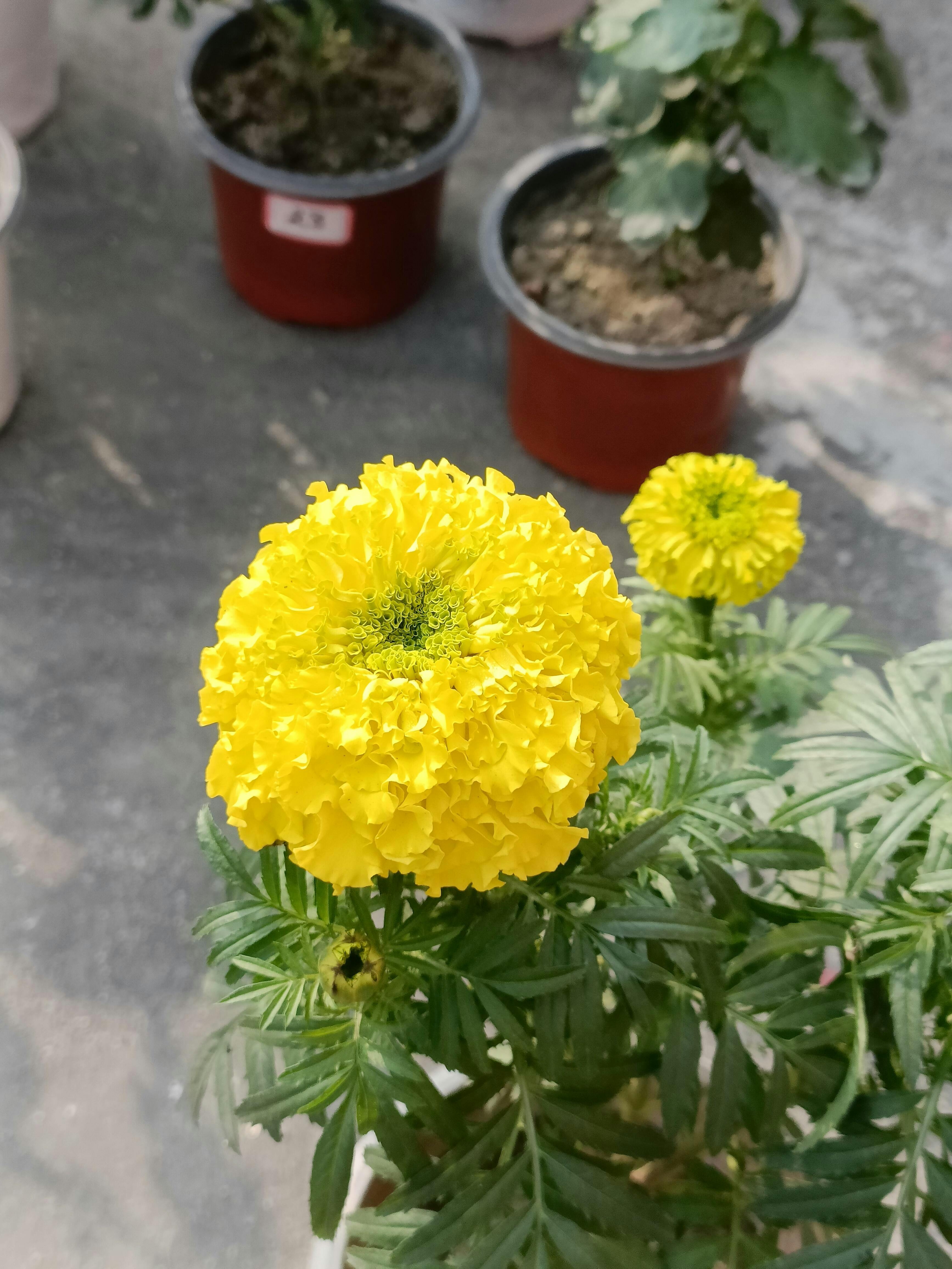 African Marigold Double Dwarfs are popular annual flowers known for their compact size 🌿 and bright yellow blooms 🌻. The plants grow about 1 foot tall and are perfect for pots or small garden spaces. These cheerful flowers not only beautify your garden but also help repel pests like tomato hornworms, cabbage worms, and whiteflies . Easy to grow, even for beginners!