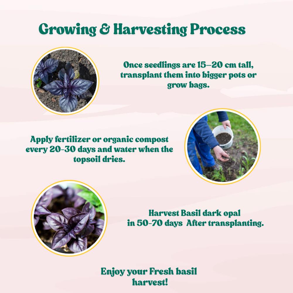 Dark Opal Basil can be grown year-round indoors, but the best time to sow the seeds is during spring and summer (February to July) when the soil temperature is warm and ideal for germination.