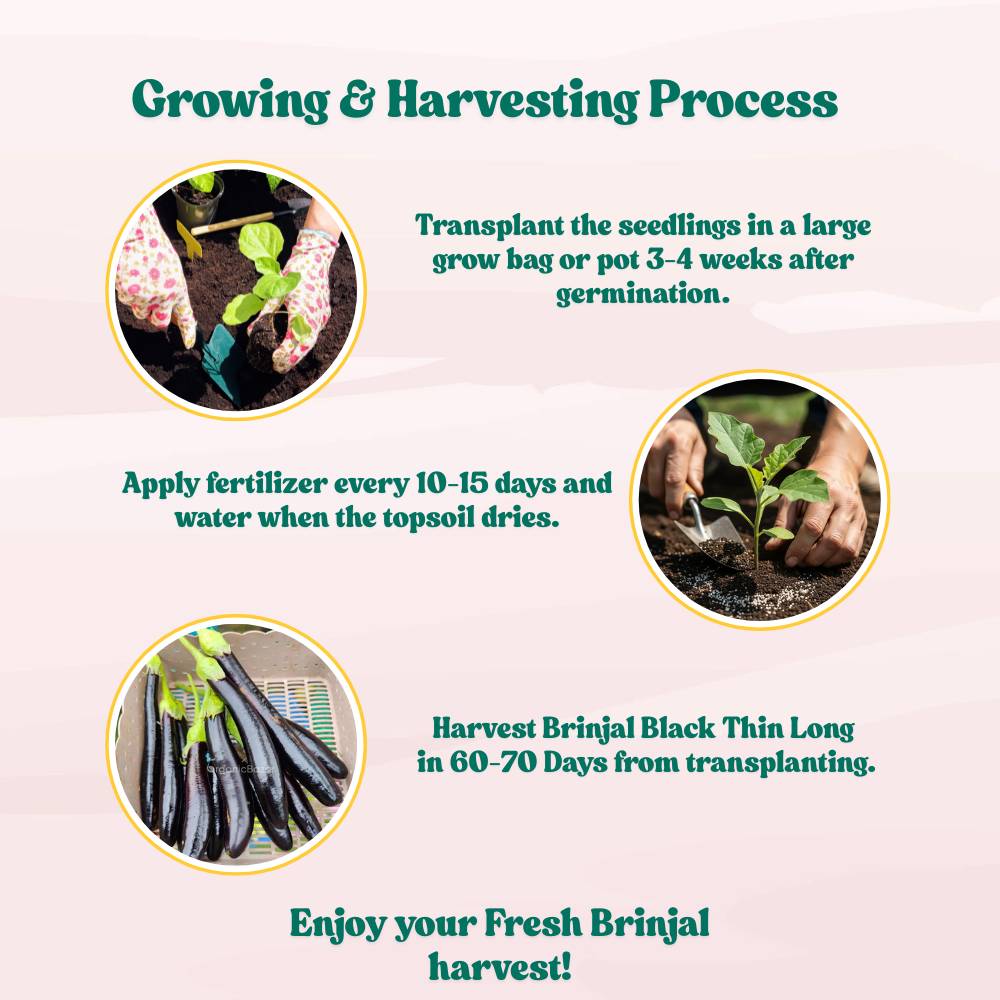 Brinjal Black Thin Long Seeds - (50 Seeds) High Germination/ High Yield / Ideal for Terrace/Kitchen Gardening (Baingan/eggplant/ बैंगन के बीज)