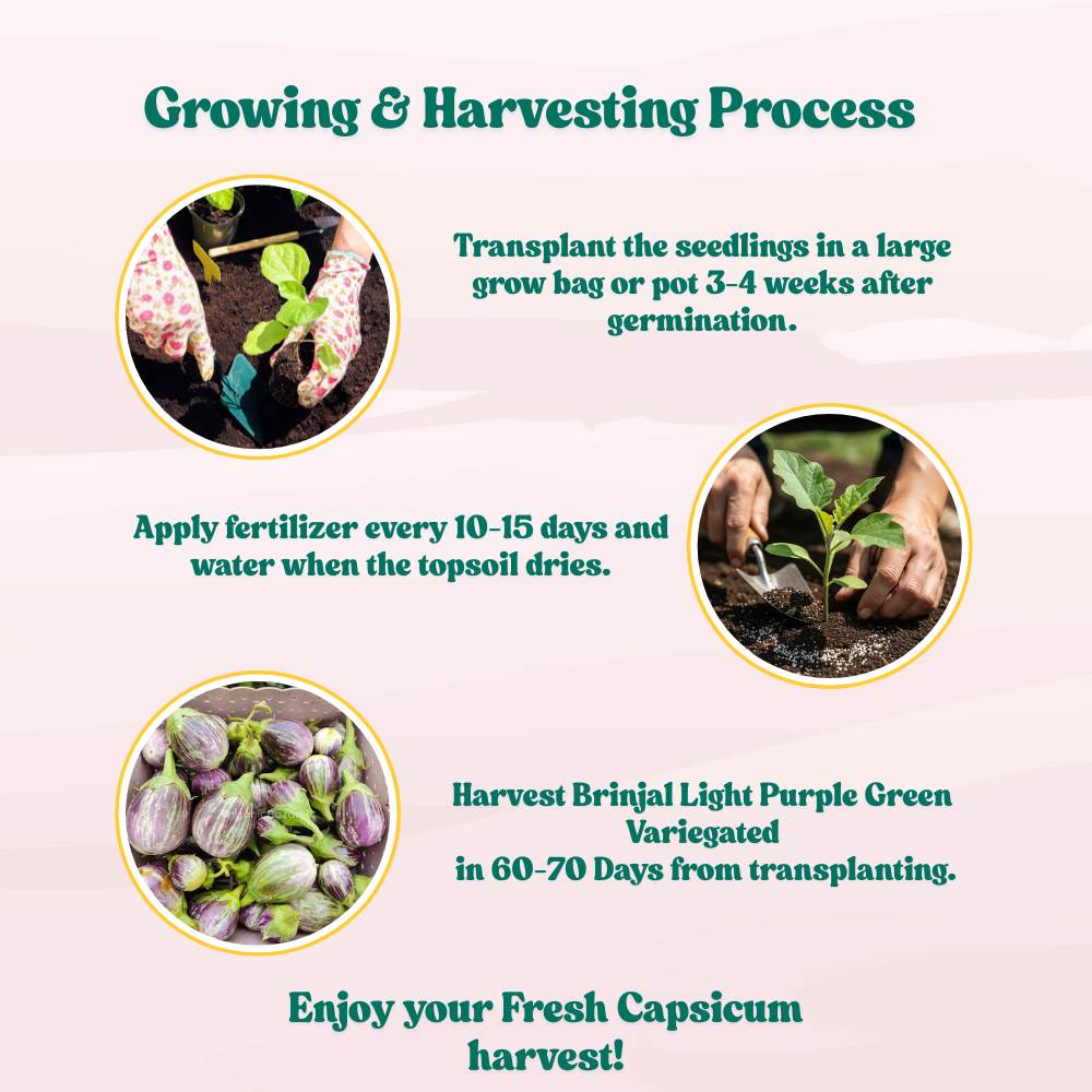 Brinjal Light Purple Green Variegated Seeds - (50 Seeds) High Germination/ High Yield / Ideal for Terrace/Kitchen Gardening (Baingan/eggplant/ बैंगन के बीज)