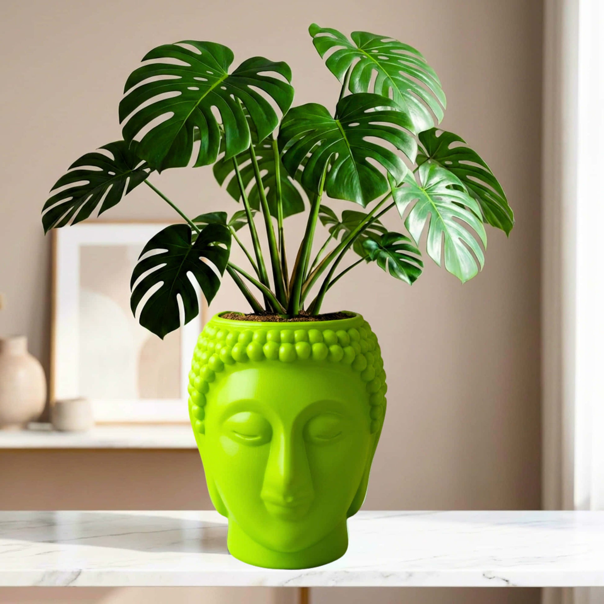 The Buddha face symbolizes peace, mindfulness, and harmony — transforming your plant display into a calming design statement.