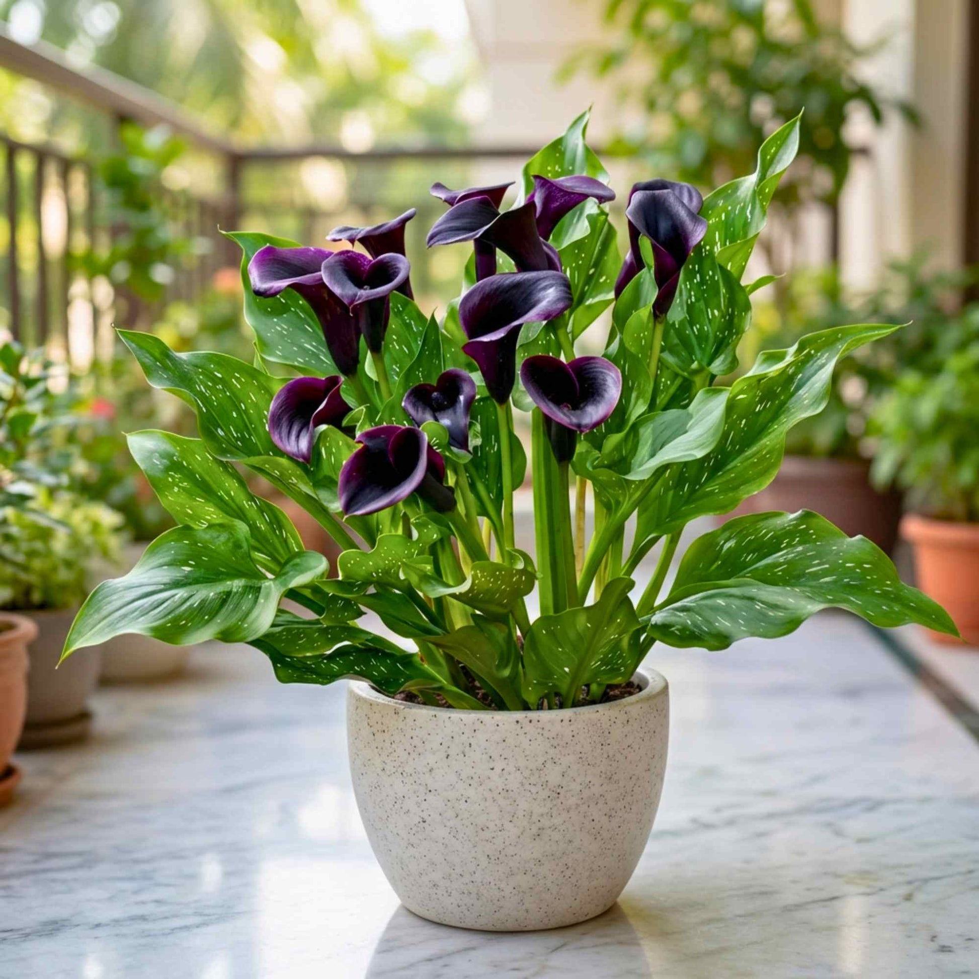 Buy the best Quality Calla Lily Black Flower Bulbs Online at the best price from www.organicbazar.net and add colors to your garden. Calla Lilies generally bloom in late spring to early summer, though this can vary based on the specific variety and growing conditions.