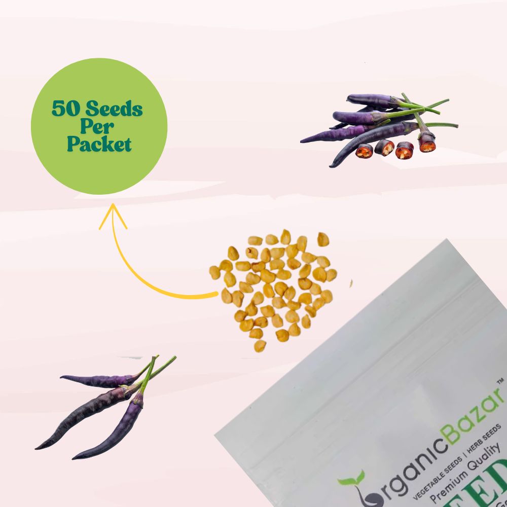Chilli Black Purple Seeds - (50 Seeds) High Yield | High Germination | Best for Home Gardens (मिर्च के बीज) (Mirch/ मिर्च के बीज)