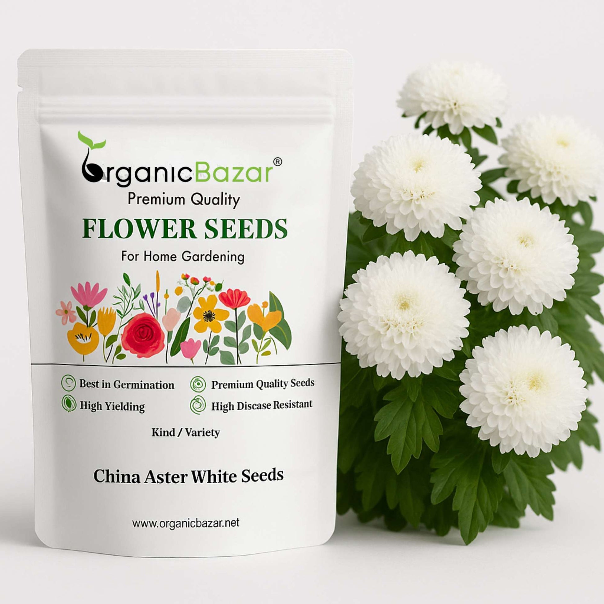 Buy China Aster White Flower Seeds Online at the best price from www.organicbazar.net and add colors to your garden.