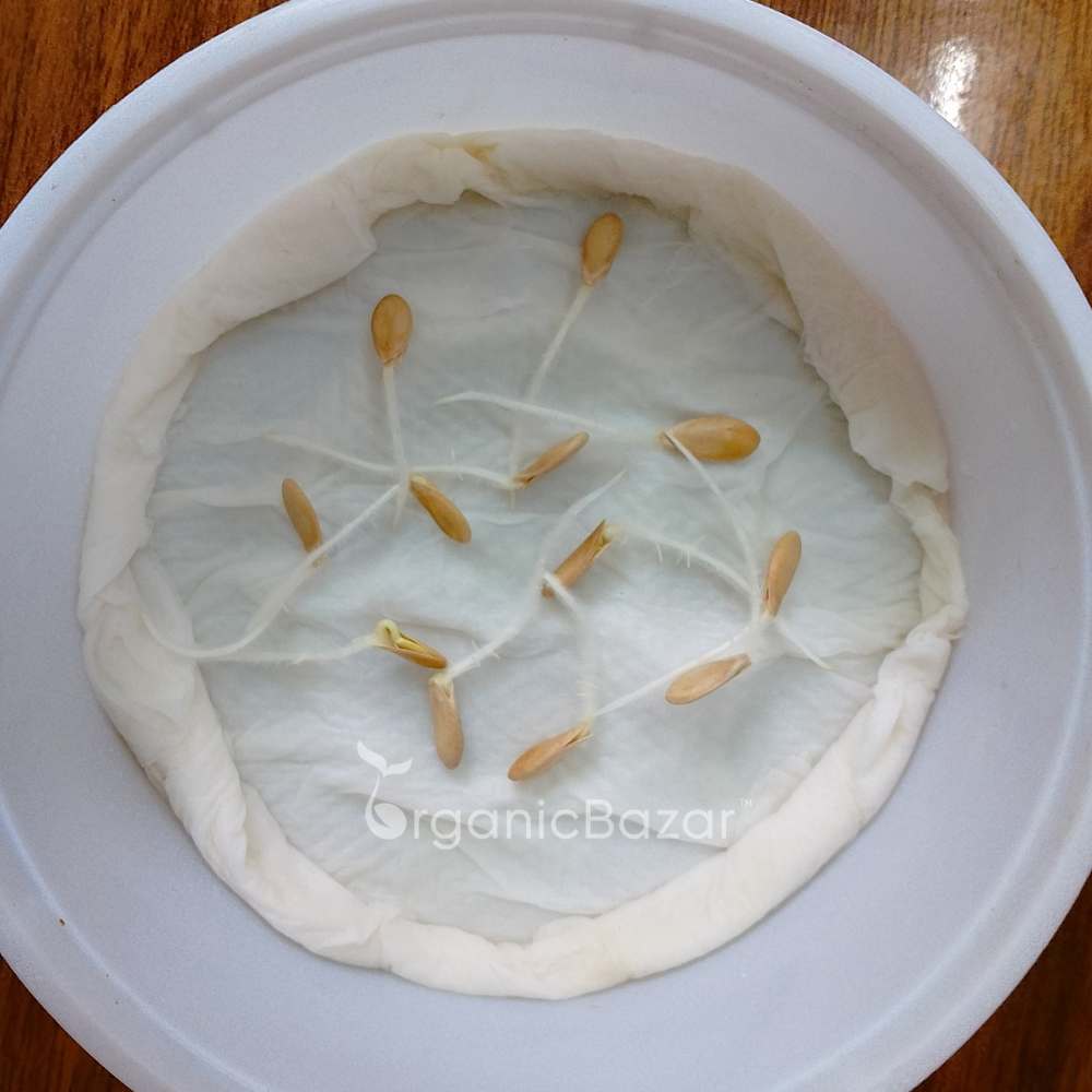 Sow 2-3 Musk Melon Super Kajri seeds per container about 1-2 cm deep in the soil. Gently water the soil and keep the soil evenly moist till the seeds germinate. Keep the container in a sunny location; musk melon seeds will take about 6-10 days to germinate.