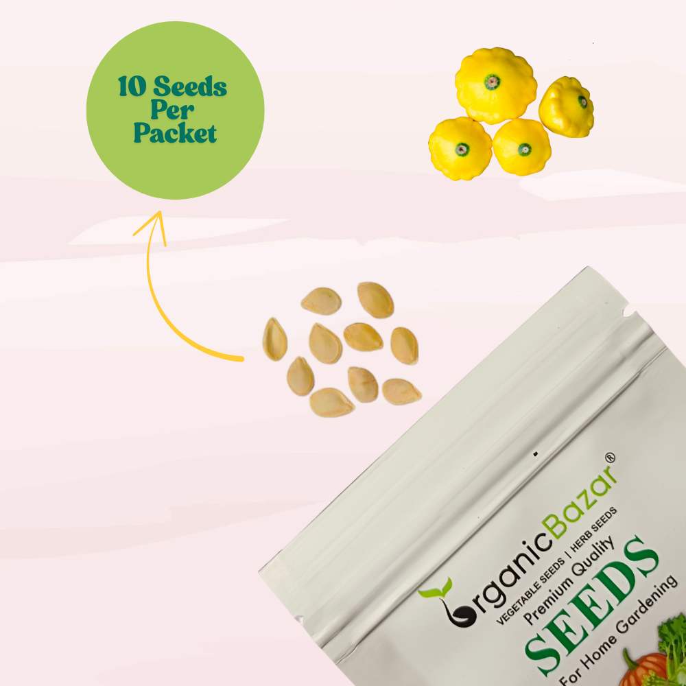 Buy top-quality 🌱 Squash Patty Pan seeds online at the best price in India 🇮🇳 from www.organicbazar.net — with an excellent germination rate 🌱✨.